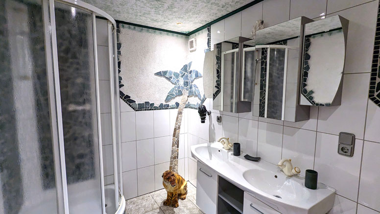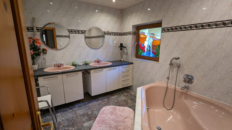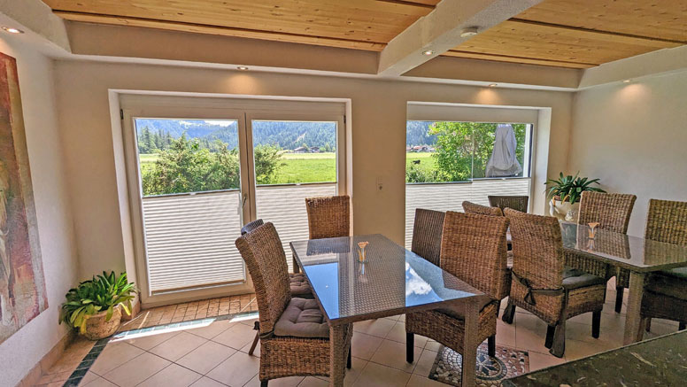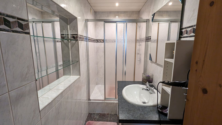 Gezellige eet- en recreatieruimte met Smart-TV, tegelkachel en toegang tot de wintertuin; direct aangrenzende, zeer mooie wintertuin met verdere eettafels; goed uitgeruste keuken (oa. Keramisch fornuis, oven, vaatwasser, koffiezetapparaat, raclette/fondue) met zithoek; een 2-persoonskamer (2-persoonsbed) met douche; een 4-persoonskamer (familiekamer met 2-persoonsbed en schuifdeur naar 2 1-persoonsbedden) met terras; een badkamer met dubbele wastafel en hoekbad; aparte WC; zonneterras met barbecue en prachtig uitzicht op de waterval.