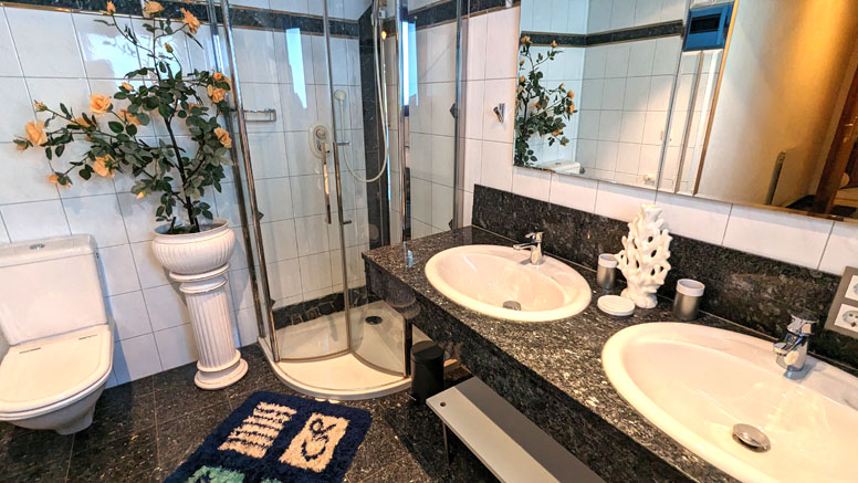 In de kelder van het gebouw hebben alle huisgasten toegang tot een gemeenschappelijke sauna (alleen in het winterseizoen; 17-21 uur) en een hobbyruimte met biljart, tafelvoetbal en darts. De zeer aardige hospita woont op de begane grond van het huis (volledig afgescheiden met haar eigen ingang).