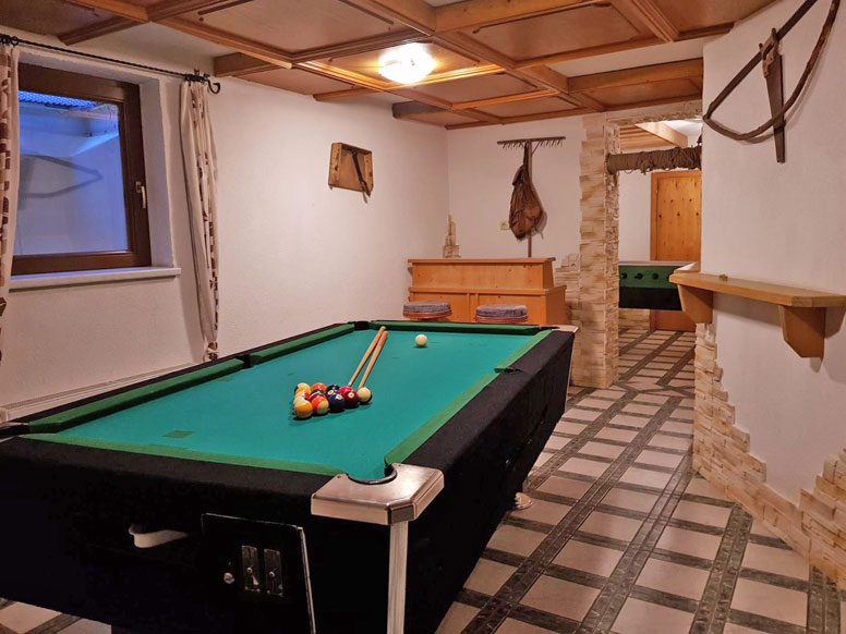 Hobbykamer met biljart, tafelvoetbal en darts; saunalandschap met Finse sauna en douche (alleen in het winterseizoen; 17-21 uur).