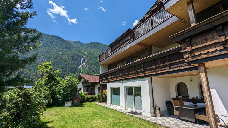 Goed uitgeruste comfort vakantiehuis (200 m²; twee-onder-een-kap met eigen ingang) ligt in een kleine wijk van Längenfeld op een hoogte van iets minder dan 1200 m. De gratis skibus die gasten naar de bergliften in Sölden brengt, op ongeveer 13 km afstand, stopt op ongeveer 450 m afstand. De Therme Längenfeld (Aqua Dome) kan ook gemakkelijk worden bereikt na een wandeling van 25 minuten (3,0 km). 2 gratis parkeerplaatsen zijn beschikbaar voor de gasten direct bij het huis, verdere gratis parkeerplaatsen op ongeveer 50 m afstand. De langlaufloipe loopt bijna direct langs het vakantiehuis. Rondom het huis mooie buitenruimte met trampoline, grasveld om te zonnen en te spelen met tuinmeubelen (zomer).