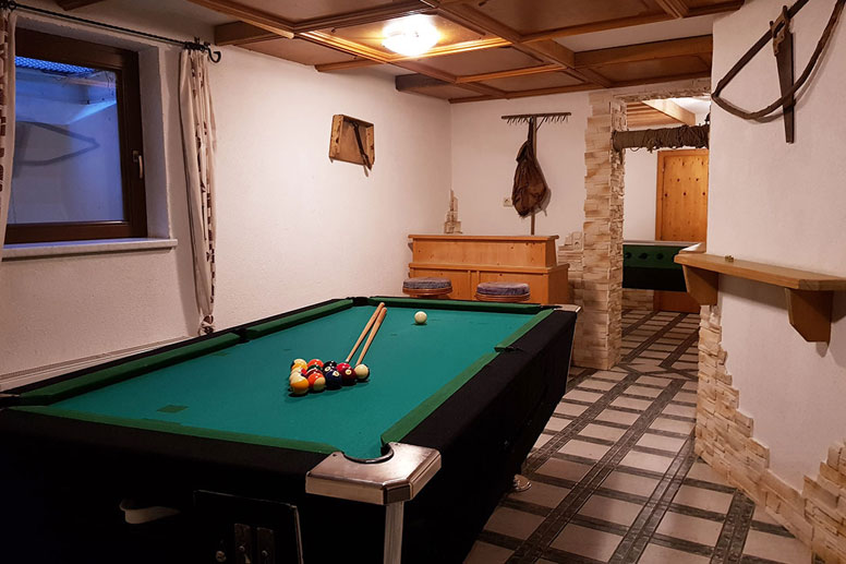 Hobbykamer met biljart, tafelvoetbal en darts; saunaruimte met Finse sauna en douche (alleen in het winterseizoen; 17-21 u).